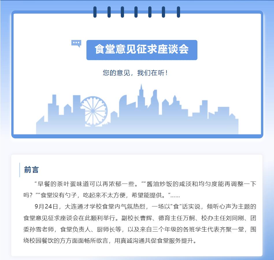 您的意见,我们在听!大连通才学校召开食堂意见征求座谈会