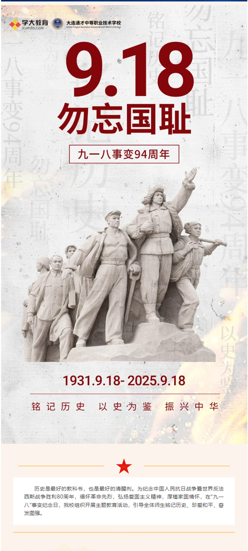 铭记历史 吾辈自强丨大连通才学校开展“九一八”事变纪念日主题教育活动